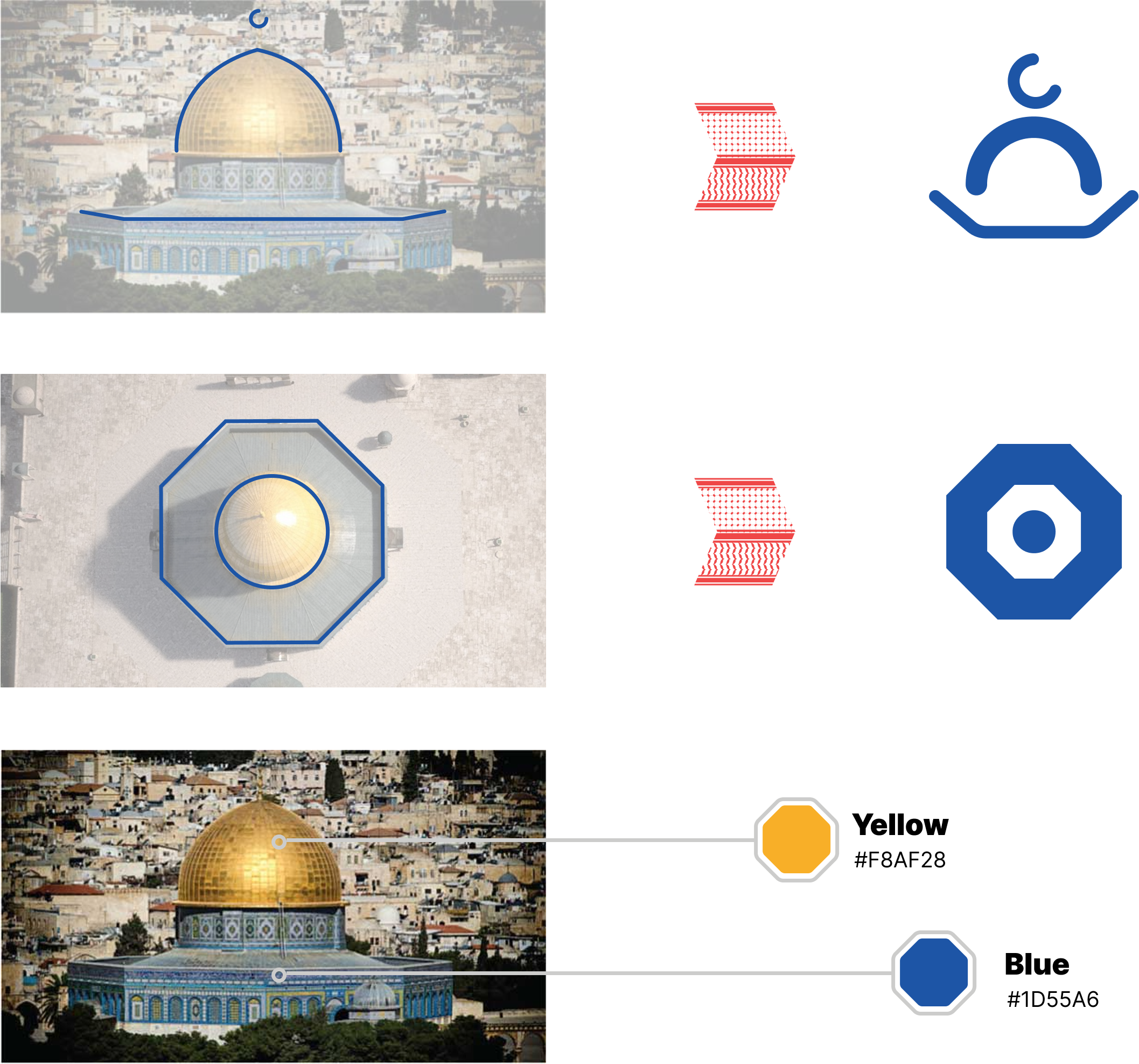Simplified lines that reduces the mosque’s design into its fundamental geometric shapes. This emphasizes the elegant interplay between the dome and the octagon, capturing the essence of its architectural form.